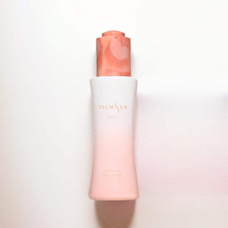 Sen gradientin viimeistely - siirtyy sulavasti kermaisesta valkoisesta yläosasta herkään punastumiseen - vaaleanpunainen pohja - herättää seesteisyyttä ja pehmeyttä, mikä tekee siitä ihanteellisen valinnan kauneusseeruille, tonikoille tai olemussekoille. Semi - mattarakenne antaa pinnalle jauhemaisen hehkua vähentäen samalla kevyen heijastuksen lisäämällä sen visuaalista hienovaraisuutta ja tuntuvaa eleganssia.